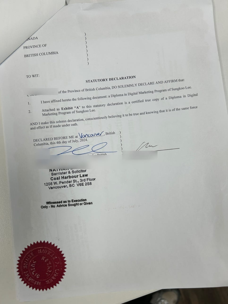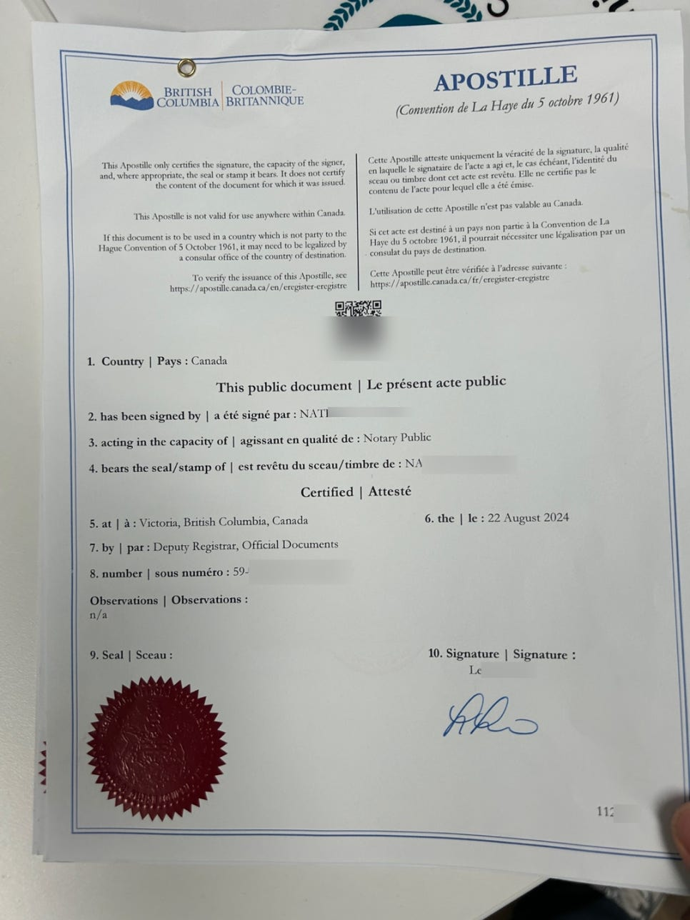 Now, the next step is the federal or provincial government Apostille certification process. Now, send the notarized diploma by mail to the BC provincial government in Vancouver. After sending it, wait a little while and the Apostille notarized document will arrive.